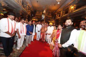 ఆప్ ముఖ్యమంత్రులు అరవింద్ కేజ్రీవాల్, భగవంత్ మాన్, ఉత్తరప్రదేశ్ మాజీ ముఖ్యమంత్రి అఖిలేశ్ యాదవ్ యాదాద్రి శ్రీ లక్ష్మినరసింహ స్వామివారి ఆలయాన్ని దర్శించుకున్నారు. సీఎం కేసీఆర్తో కలిసి ఆలయ గర్భాలంయలో ప్రత్యేక పూజలు చేశారు. యాదాద్రీశుడిని దర్శించుకుని తరించిపోయారు. అనంతరం కృష్ణ శిలలలో నిర్మించిన ఆలయాన్ని ఆసాంతం ఆసక్తిగా పరిశీలించారు. ఆలయ నిర్మాణ శైలిని చూసి అబ్బురపడిపోయారు.
