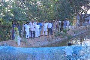 చిట్యాల మండలంలోని ఏపూరు గ్రామంలో బొక్క యాదిరెడ్డి వ్యవసాయ క్షేత్రం వద్ద ఏర్పాటు చేసిన చేపల చెరువును పరిశీలించిన విద్యుత్ శాఖ మంత్రి జగదీష్ రెడ్డి, నకిరేకల్ ఎమ్మెల్యే చిరుమర్తి లింగయ్య చేపల చెరువు వ్యయ, ఆదాయాల గురించి తెలుసుకున్నారు సూచనలు సలహాలు ఇచ్చినారు