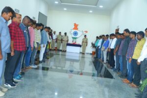 ఈ కార్యక్ర మంలో అడిషనల్ డీసీపీ అడ్మి న్ ఎస్ మహేందర్,ట్రాఫిక్ ఏసిపి ఫణిందర్,ఎస్బి ఇన్స్పెక్టర్ ర ఘుపతి రెడ్డి,సిసిఆర్బి ఇన్స్పెక్ట ర్ కుమార్,సిసిఎస్ సిఐ సంజ య్,రిజర్వ్ ఇన్స్పెక్టర్ ధరణి కుమార్,సూపరిండెంట్లు ఎస్.కె జమీల్ పాషా,ఫియాజుద్దీన్ మ రియు కార్యాలయ సిబ్బంది అ ధికారులు కలసి పుష్పాలు వేసి నివాళులర్పించి భారత స్వతం త్ర పోరాటంలో ప్రాణాలర్పించిన మహనీయుల అమరవీరులు త్యాగాలను స్మరిస్తూ వారి ఆత్మ కు శాంతి కలగాలని ఉదయం 11:00 గంటలకు కమిషనరేట్ కార్యాలయ ఆవరణలో 2 నిమి షాలు మౌనం పాటించారు.