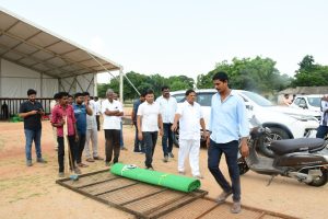 ఈ నేపద్యంలో సభప్రాంగణాన్ని ఆదివారం శాసన సభ్యులు నల్లమోతు భాస్కర్ రావు, స్థానిక మునిసిపల్ చైర్మన్ పరిశీలించారు. ప్రాంగణంలో వేదిక నిర్మాణం, విఐపి గాలరీ, వేదికకు దారి, లైటింగ్, సౌండ్ సిస్టం సక్రమంగా చేయాలని అధికారులను ఆదేశించారు.