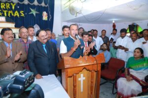 రాష్ట్ర ప్రజలందరికీ పౌర సేవలలో భాగంగా ప్రజా పరిపాలన అందిస్తామని ప్రజలకు రాష్ట్ర ప్రభుత్వ పాలన చేరువ చేయడానికి ప్రజా పాలన కార్యక్రమాన్ని చేపడుతున్నట్లు ఆయన తెలిపారు.ఇంచార్జి జిల్లా కలెక్టర్ హేమంత్ పాటిల్ కేశవ్ పాటిల్, ఎస్పీ అపూర్వరావు, అదనపు కలెక్టర్ శ్రీనివాస్ క్రిస్టమస్ శుభాకాంక్షలు తెలిపారు.ఈ కార్యక్రమంలో చర్చి స్పీకర్ పండు ప్రేమ్ కుమార్, పాస్టర్ సతీష్ చంద్రదాస్, ప్రెసిడెంట్ సి.ఎస్ క్రిస్టఫర్, చర్చ్ ప్రతినిధులు అప్షాలుమ్, కృపానందం, ఆనంద్ ప్రసాద్, తదితరులు పాల్గొన్నారు.కార్యక్రమం చివరిలో క్రైస్తవ మత పెద్దలు మంత్రికి ఆశీర్వచనాలు అందచేశారు.