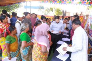 ప్రజాపాలన అభయహస్తం గ్యారంటీల ధరఖాస్తుల స్వీకరణ నమోదు సందర్భంగా ప్రజలకు ఎలాంటి అసౌకర్యం కలగకుండా చూడాలని ఇంఛార్జి జిల్లా కలెక్టర్ హేమంత్ కేశవ్ పాటిల్ అధికారులకు సూచించారు. శనివారం తిప్పర్తి మండలం గడ్డి కొండారం,వెంకటాద్రి పాలెం గ్రామాల్లో నిర్వహించిన ప్రజాపాలన అభయహస్తం గ్యారెంటీల దరఖాస్తుల స్వీకరణ కార్యక్రమును ఇంఛార్జి జిల్లా కలెక్టర్ హేమంత్ కేశవ్ పాటిల్ పరిశీలించారు. ఈ సందర్భంగా ప్రజలతో మాట్లాడి దరఖాస్తులు ఏ విధంగా పూరించి ఇస్తున్నారు,దరఖాస్తులు రిజిస్టర్ లలో ఏ విధంగా నమోదు చేస్తున్నారు పరిశీలించి సూచనలు చేశారు. ప్రతి దరఖాస్తుకు తప్పని సరిగా రసీదు అంద చేయాలని ఆదేశించారు.