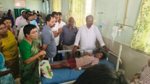 భూపాలపల్లి జిల్లా కేంద్రం గాంధీనగర్ లోని ప్రభుత్వ అర్బన్ రెసిడెన్షియల్ స్కూల్(యూఆర్ఎస్)లో కలుషిత నీరు తాగి 11 మంది విద్యార్థులు అస్వస్థతకు గురైన సంఘటనపై భూపాలపల్లి ఎమ్మెల్యే గండ్ర సత్యనారాయణ రావు సీరియస్ అయ్యారు. శనివారం భూపాలపల్లి జిల్లా కలెక్టర్ రాహుల్ శర్మ, ఎస్పీ కిరణ్ ఖరే, అడిషనల్ కలెక్టర్లు, డీఈవో, డీఎస్పీ ఇతర అధికారులతో కలిసి స్కూల్, హాస్టల్ ను పరిశీలించారు. అనంతరం జిల్లా ప్రభుత్వ ఆసుపత్రిలో చికిత్స పొందుతున్న 11 మంది విద్యార్థులను ఎమ్మెల్యే గండ్ర సత్యనారాయణరావు, జిల్లా కలెక్టర్ రాహుల్ శర్మ, ఎస్పీ కిరణ్ ఖరే పరామర్శించి వివరాలు అడిగి తెలుసుకున్నారు.