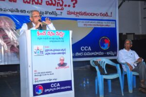11 రోజుల సమయం పట్టిందన్నారు. చండీఘడ్ లో కేవలం 644 పోలింగ్ బూతుల సమాచారం రావటానికి 5 రోజులు పట్టటం హాస్యాస్పదం అన్నారు. ఆంధ్రా లో ప్రొవిషనల్ ఫైనల్ పర్సెంటేజీల మధ్య తేడా 12 .5 % గా ఉందన్నారు.గత లోకసభ ఎన్నికలలో ఈ శాతం 5 కోట్ల ఓట్లుగా ఉంది. ఈ తేడా లేకపోతె ప్రతిపక్ష పార్టీ లకు 305 సీట్లకు పైగా వచ్చేవన్నారు. ఫేస్ 2 ఎన్నికల డేటా కనీసం స్టేట్ విస్ గా కూడా ఇంతవరకు లేదన్నారు. ఇందులో మెజారిటీ స్థానాలు ఎన్డీయే నెగ్గటంలో ఆశ్చర్యం లేదు. దేశంలో ఇంతవరకు ప్రొవిషనల్ ఫైనల్ ఓట్ల శాతాలలో 2 % కన్నా ఎపుడు వ్యత్యాసం లేదు. మొన్న యుపిలో ఈ వ్యత్యాసం 2 % మాత్రమే ఉంటె ఎన్డీయే సీట్లు తగ్గాయి. ఎన్నికల సంఘం మహా మాయాజాలం వల్ల ఎన్నికల ఫలితాల తర్వాత పోలింగ్ శాతాన్ని ప్రకటించటం జరుగుతుందన్నారు. సుప్రీం కోర్టు అడిగినా సరైన వివరాలు ఇవ్వటంలేదు. ప్రజలు ప్రభుత్వాన్ని ఎన్నుకోవటం కాదు ప్రభుత్వమే వోటర్లని సెలెక్ట్ చేసుకొంటుంది. ప్రభుత్వం నెమ్మదిగా ప్రజలకు ఓట్ల చోరీని అలవాటు చేస్తోందని ప్రజలు మేల్కొనక పొతే భవిష్యత్తు అంధకార మైతుందన్నారు.హిందూ రాజ్యం స్థాపిస్తామంటే జనసంఘ్ పార్ట్ కి వచ్చిన ఓట్లు అత్యధిక శాతం 9.5 %. ఇప్పుడు అవినీతి ఎమర్జెన్సీ పేరుతొ అనేక ప్రతిపక్షాల సహకారంతో నెమ్మదిగా అధికారం లోకి వచ్చినవాళ్లు ఇప్పుడు తప్పుడు ఓట్లతో వాళ్ళ హిందూ ఎజెండాను ముందుకు తీసుకు వస్తున్నారు. ఈ దేశం ఒక్క ఆత్మ ఎన్నికల ప్రజాస్వామ్యం లో ఉంది. దీని ఖమ్మం ప్రజలు వదలకుండా పోరాడాలన్నారు. ఈ కార్యక్రమంలో ప్రత్యామ్నాయ పౌర సమూహం నాయకులు ప్రజాసంఘాల నాయకులు పాల్గొన్నారు.