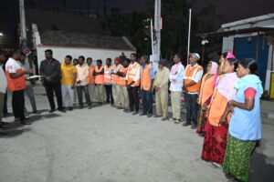 ఉదయం పారిశుధ్య పనులు కొనసాగే సమయంలో జవానులు, సానిటరీ ఇన్స్పెక్టర్ లు, ససూపర్ వైజర్లు పర్యవేక్షణ చేయాలన్నారు. స్వచ్చ్ ఆటోలు, ట్రాక్టర్ వాహనాల ద్వారా చెత్తను ఎప్పటికప్పుడు డీఆర్ సీసీలు, డంపు యార్డుకు తరలించాలన్నారు. సెక్రిగేషన్ ప్రక్రియ ను తప్పక పాటించి డంపు యార్డుకు వెల్లే చెత్తను తగ్గించేలా చర్యలు తీసుకోవాలని సూచించారు. ప్రతి స్వచ్చ్ ఆటోలో తడి, పొడి చెత్తకు సంబంధించి పార్టేషన్ తప్పనిసరిగా ఉండాలన్నారు. ఎక్కడ జీవిపి, గార్బేజ్ పాయింట్ల వద్ద చెత్త కనబడకుండ చూడాలని, గార్బేజ్ పాయింట్ల వద్ద చెత్త పడకుండ జవానులు బాధ్యత వహించాలని ఆదేశించారు. డివిజన్లలో కార్మికులను సర్దుబాటు చేస్తూ పారిశుధ్య పనులు సక్రమంగా జరిగేలా అధికారులు, సిబ్బంది చర్యలు తీసుకోవాలని ఆదేశించారు. డివిజన్లలో పార్కులను కూడ పరిశుభ్రంగా ఉండేలా చూడాలని, పార్కులలో ఎలాంటి సమస్యలు ఉన్న వెంటనే పరిష్కరించాలన్నారు. వాకర్లు, స్థానిక ప్రజలకు ఎలాంటి ఇబ్బందులు కలగకుండా పార్కుల నిర్వహణ చేపట్టాలన్నారు. డివిజన్ లలో డ్రైనేజీలను ఎప్పటికప్పుడు శుభ్రం చేయాలన్నారు. ఓపెన్ డ్రైనేజీలు ఉన్న చోట చెత్త, సిల్టును తొలగించి మురుగు నీరు నిలువకుండ తగిన చర్యలు తీసుకోవాలని ఆదేశించారు. ప్రధానంగా రెండు లేక మూడు డ్రైనేజీలు ఓకే చోట కలిసే జంక్షన్ వద్ద, కల్వర్టుల వద్ద చెత్త పేరుకు పోకుండ చూడాలని, చెత్త, సిల్టును ఎప్పటికప్పుడు తొలగించాలన్నారు. డివిజన్ లలో పారిశుధ్యం మెరుగ్గా ఉంటేనే ప్రజల ఆరోగ్యం బాగుంటుందని, ఆదిశగా పారిశుధ్య అధికారులు, సిబ్బంది, కార్మీకులు పారిశుధ్య పనులు చేయాలని ఆదేశించారు. పారిశుధ్య కార్మికులు కూడ తమ ఆరోగ్యం పట్ల కూడ శ్రద్ద వహించాలని పనులు చేసే సమయంలో నగరపాలక సంస్థ ద్వారా అందించిన ఆఫ్రాన్ లు, చేతులకు గ్లౌజులు, బూట్లు తప్పక ధరించాలన్నారు. తెల్లవారు జామున రోడ్లను శుభ్రపరిచే సమయం కారర్మికులు జాగ్రత్తలు పాటించాలని సూచించారు. పారిశుధ్య పనులపై సూపర్ వైజర్లు, సానిటరీ ఇన్స్పెక్టర్ లు, జవానులు పర్యవేక్షణ చేయాలన్నారు. ప్రజల నుండి వచ్చే ఫిర్యాదులను స్వీకరించి సంబంధిత సమస్యను వెంటనే పరిష్కరించేలా పారిశుధ్య కార్యక్రమాలు చేయాలని ఆదేశించారు. ఈ కార్యక్రమంలో కార్పోరేటర్లు తోట అనిల్, ఆకుల నందిని ఉదయ్, ఎంహెచ్ఓ సుమన్, సానిటేషన్ సూపర్ వైజర్ శ్యామ్ రాజ్, సానిటరీ ఇన్స్పెక్టర్ శ్రీధర్, జవానులు, మాజీ కార్పోరేటర్ ఆకుల పద్మప్రకాష్ తదితరులు పాల్గొన్నారు.