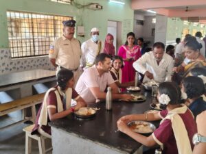 విద్యార్థులతో కలిసి సహపంక్తి భోజనం.
