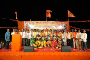 హిందూధర్మం అంటే మతం కాదు, జీవన విధానం అని ఆర్ఎస్ఎస్ జిల్లా సహ సంఘచాలక్ ఎలగందల సత్యనారాయణ అన్నారు. మానకొండూర్ ఉప మండలం ,శ్రీరామ హిందూ సమ్మేళన సమితి ఆధ్వర్యంలో హిందూ సమ్మేళన కార్యక్రమం జరిగింది. ఈ ప్రోగ్రాంకు ముఖ్య అతిథిగా హాజరైన ఆర్ఎస్ఎస్ జిల్లా సహ సంఘచాలక్ ఎలగందల సత్యనారాయణ మాట్లాడుతూ హిందూ ధర్మం , సనాతన ధర్మం కు శాశ్వత చిరునామా భారతదేశమే అన్నారు. అందుకే ప్రపంచ దేశాల్లో అన్నింటికంటే భారత దేశానికి ఓ ప్రత్యేకత ఉందన్నారు. ప్రతి ఒక్కరూ హిందూ సంస్కృతి సంప్రదాయాలుకాపాడుకోవాలన్నారు. దేశ ప్రగతికి సత్యం, ధర్మం వంటి విలువలను ఆచరించడం అవసరమని తెలిపారు. పంచ పరివర్తనల ద్వారా సమాజంలో మార్పు సాధ్యమవుతుందని , ఆ దిశగా ముందుకు కొనసాగాలని తెలిపారు. హిందూ ధర్మ పరిరక్షణ కోసం కృషి చేయాలన్నారు. హిందూ సమాజం ఐక్యత తో ఉండాలన్నారు. హిందూ ధర్మ రక్షణ, సంస్కృతి, సంప్రదాయాలను పరిరక్షించుకోవడానికి నడుం బిగించాలని ఆయన ఈ సందర్భంగా పిలుపునిచ్చారు. హిందూ సమ్మేళన సందర్భంగా నిర్వహించిన సాంస్కృతిక కార్యక్రమాలు అలరించాయి. హిందూ సమ్మేళన కార్యక్రమంలో పాల్గొన్న వారందరికీ అల్పాహారం, మజ్జిగ ను అందించారు. ఈ కార్యక్రమంలో శ్రీరామ హిందూ సమ్మేళన సమితి అధ్యక్షులు సరఫ్ రామకృష్ణ , గర్రెపల్లిమహేశ్వర శర్మ అయ్యగారు , మహిళా వక్త అనుపమ లతో పాటు సదాశివ పల్లి, మానకొండూర్ , ముంజంపల్లి, శ్రీనివాస్ నగర్, జగ్గయ్యపల్లి, లింగాపూర్, ఈదులగట్టపల్లి,గ్రామాల హిందూ బంధువులు ఈ కార్యక్రమంలో పాల్గొన్నారు.